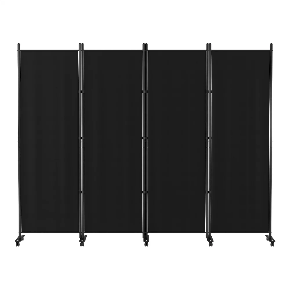 Artiss 4 Panel Room Divider Screen 217cm Black Oxford Fabric, Foldable, Lockable Wheels, Metal Frame, Portable Partition