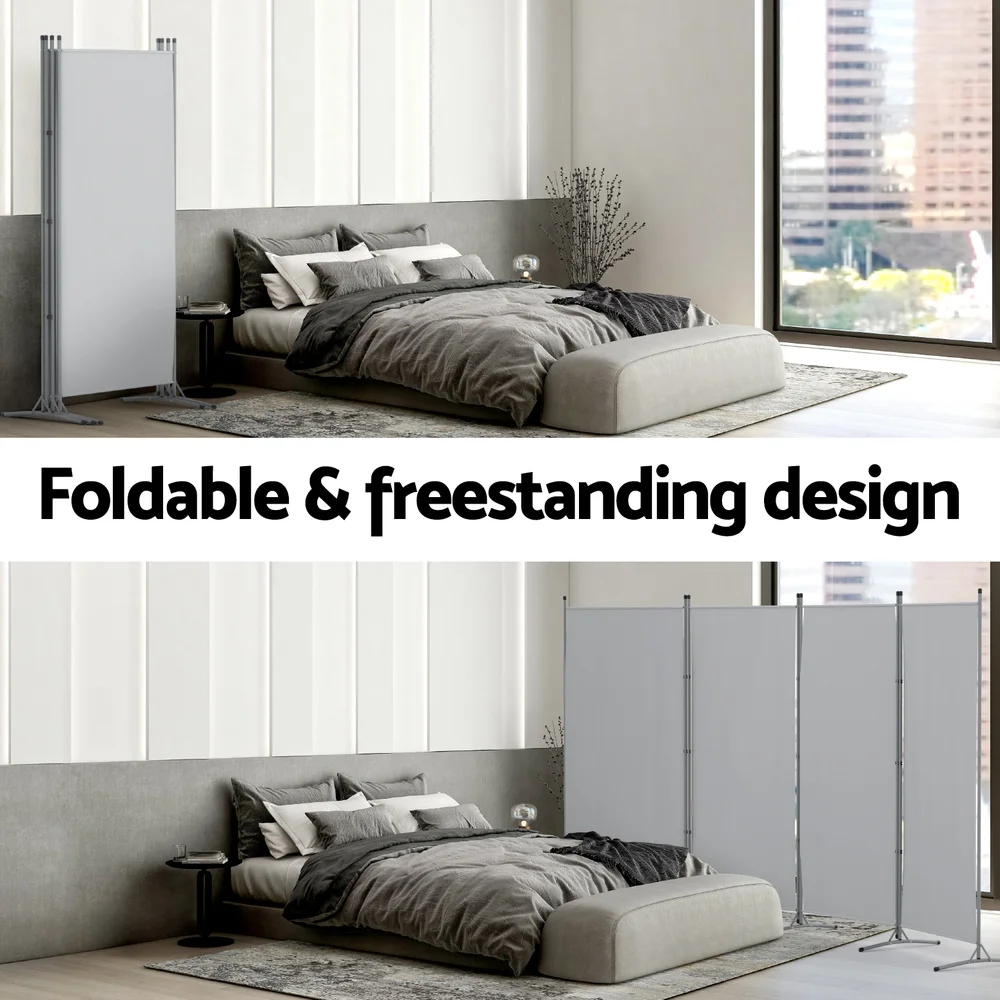 Artiss 4 Panel Room Divider Screen 345x180cm Grey – Foldable, Lightweight, Metal Frame, Adjustable, Home/Office Use