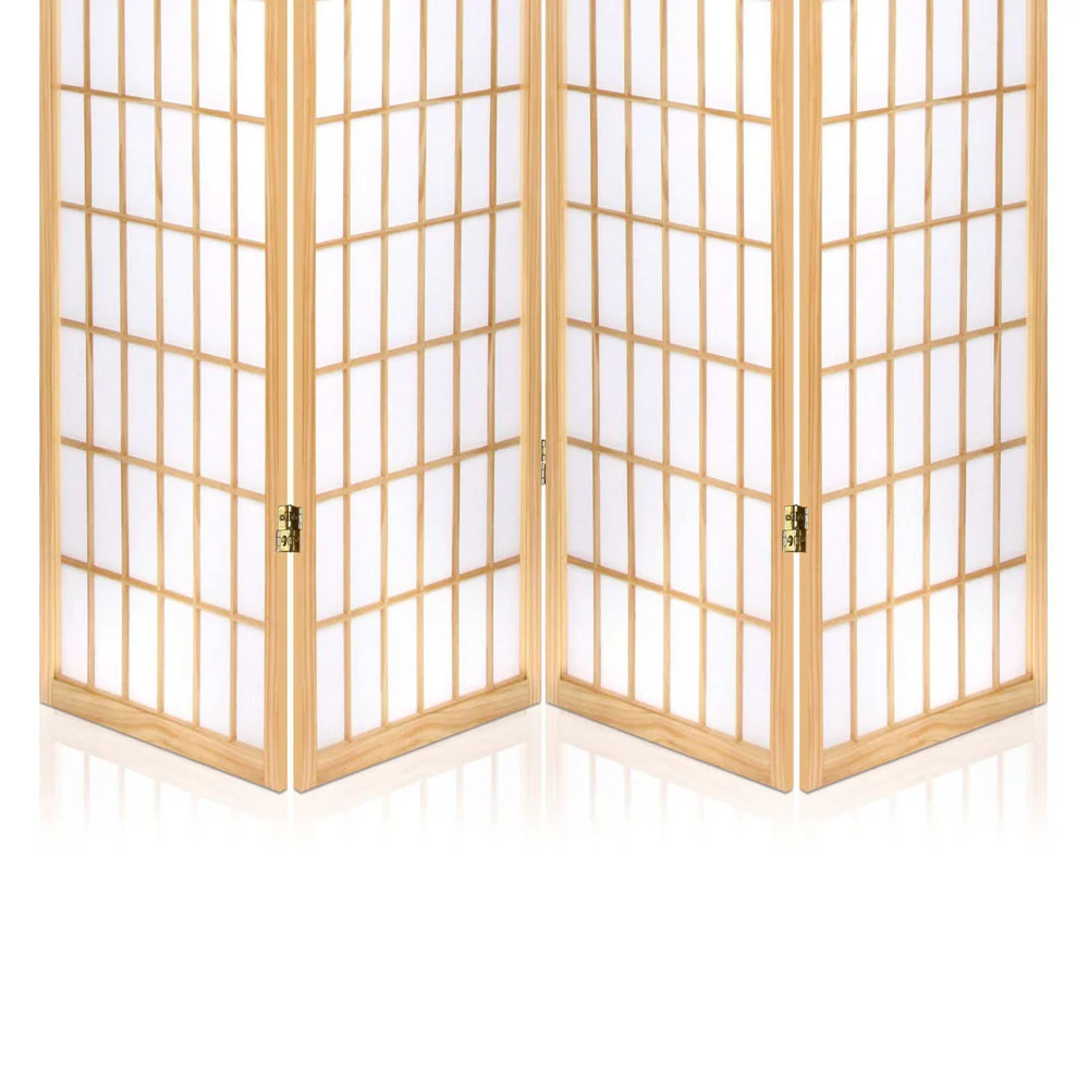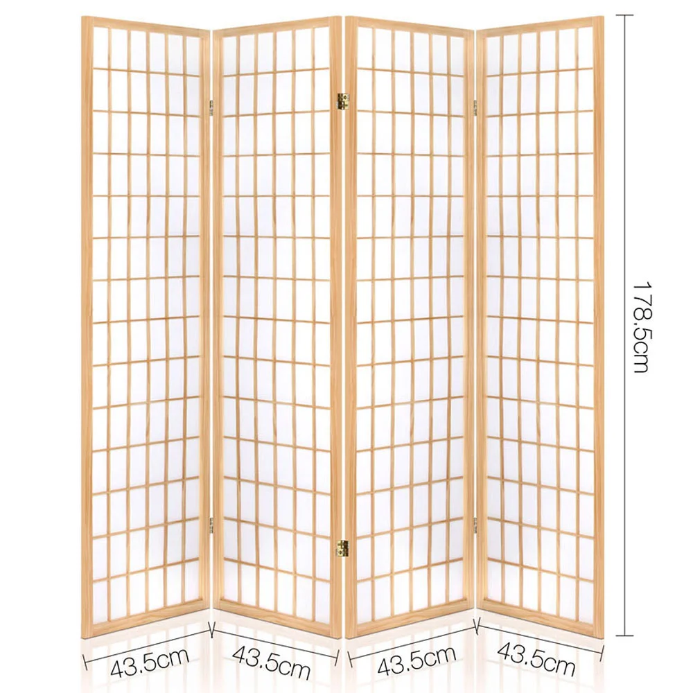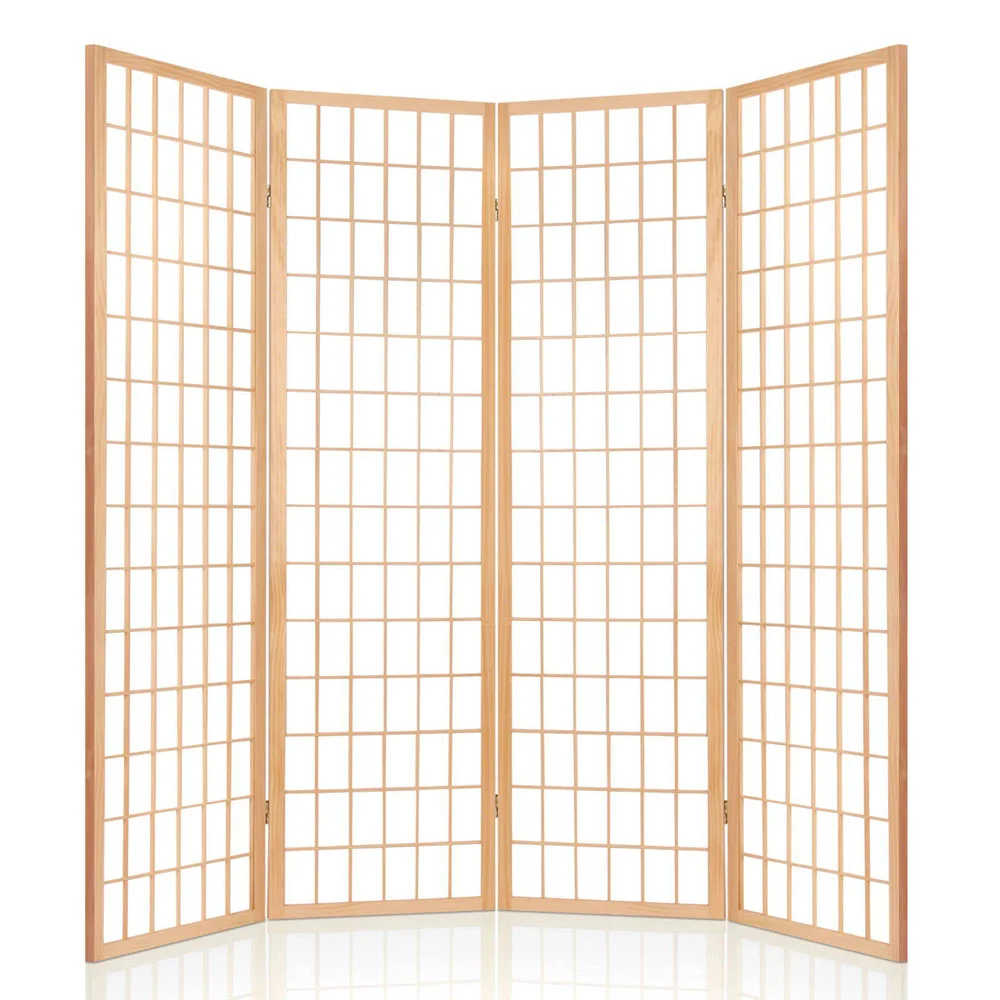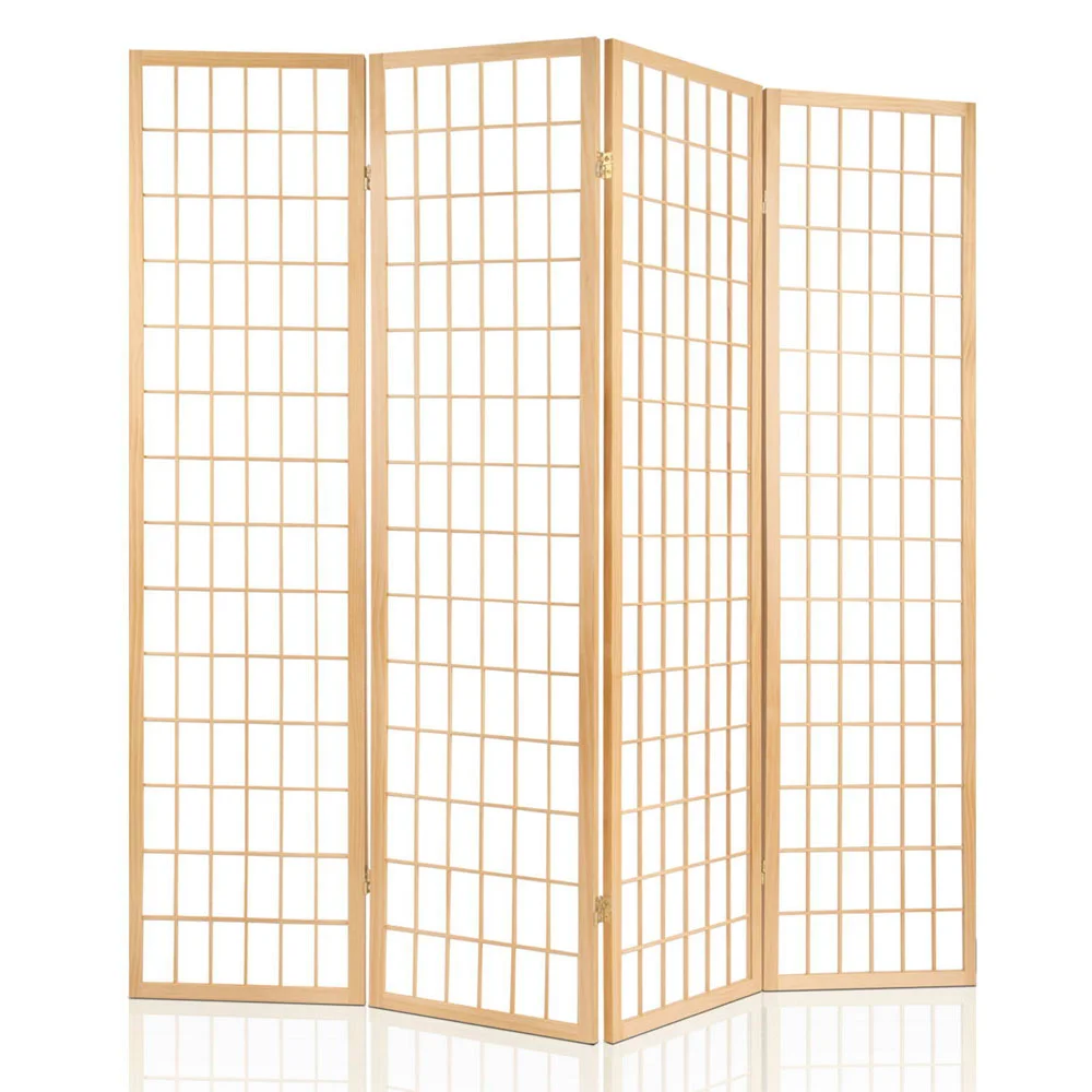 Artiss 4 Panel Room Divider Screen - 174x179cm Natural | Solid Pine Wood | Eco-Friendly Fabric | Foldable Design