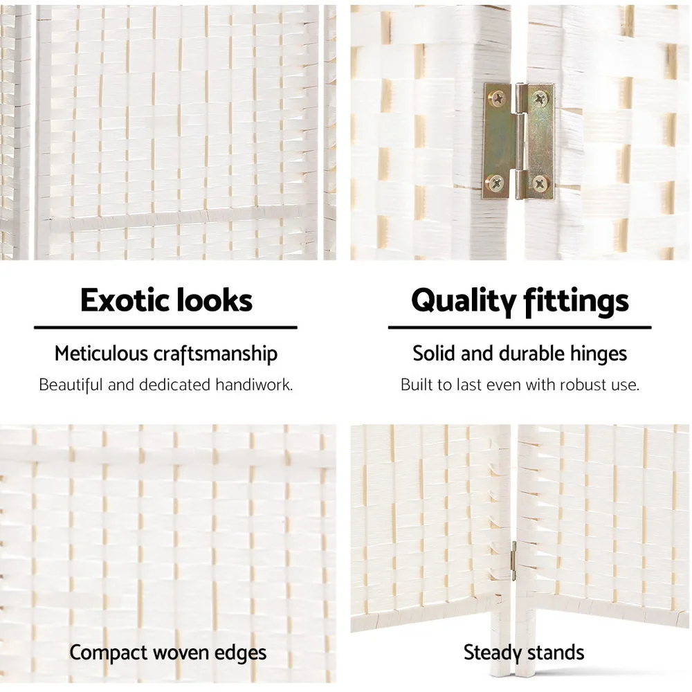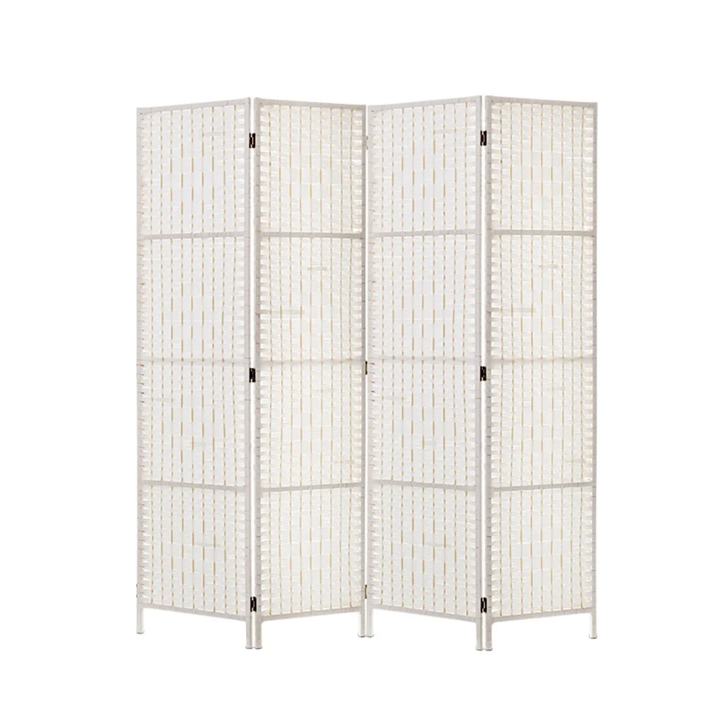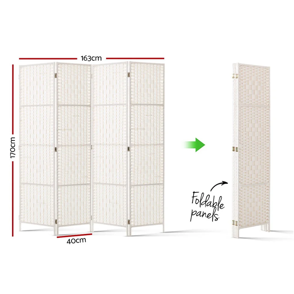 Artiss 4 Panel Room Divider Screen 163x170cm - White Woven Rattan Look, Poplar Wood, Foldable, Eco-Friendly Design