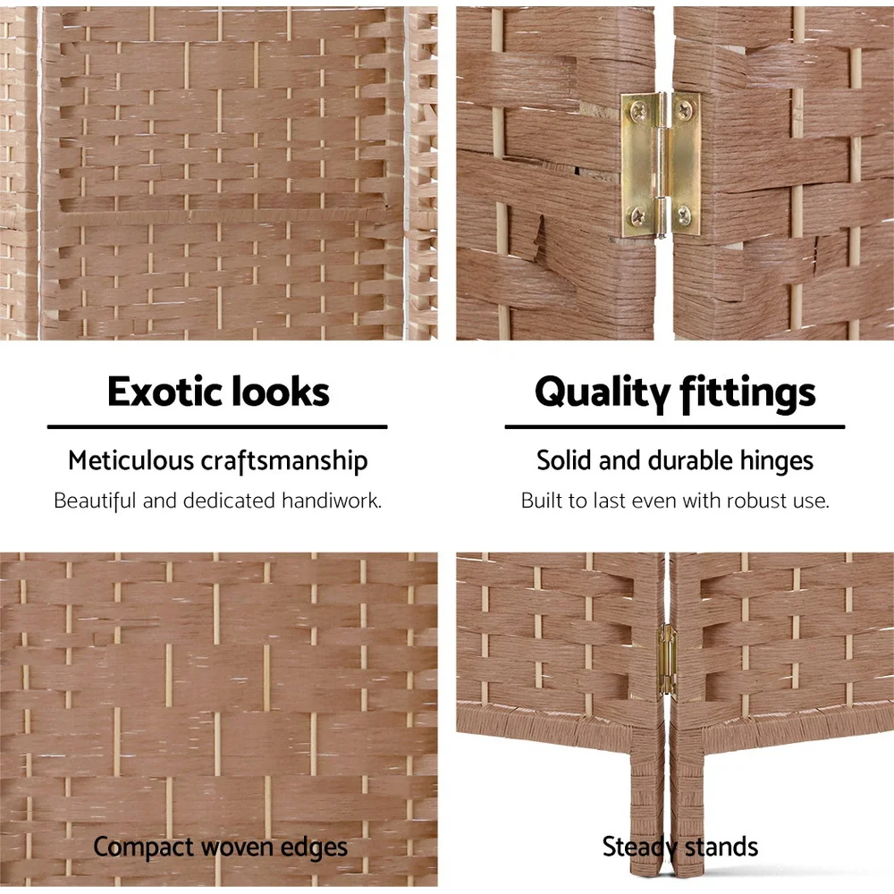Transform your space effortlessly with the Artiss 4 Panel Room Divider Screen, designed to offer instant privacy with a touch of elegance. Crafted from non-toxic, solid poplar wood, this divider features hand-woven rolled paper panels that beautifully mimic rattan, offering a stylish yet practical solution for any room. Lightweight yet sturdy, it incorporates two-way metal hinges for durability and ease of use. The foldable design allows for convenient storage and versatility, while its water-resistant and breathable construction ensures longevity. Elevate your interior with this exotic room divider, backed by a 1-year warranty.