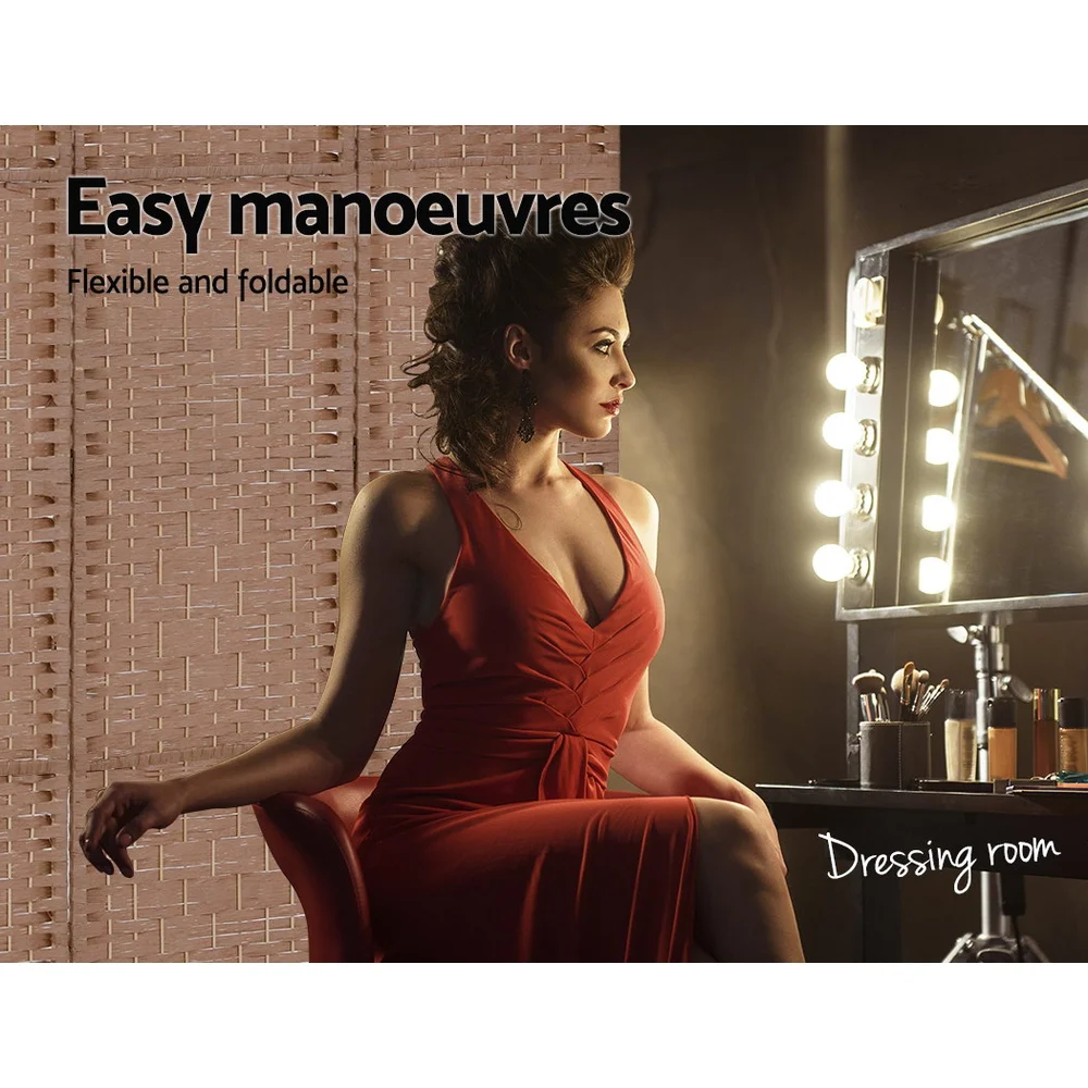 Artiss 4 Panel Room Divider Screen - 163x170cm, Natural Woven, Poplar Wood, Eco-Friendly, Foldable, Water-Resistant