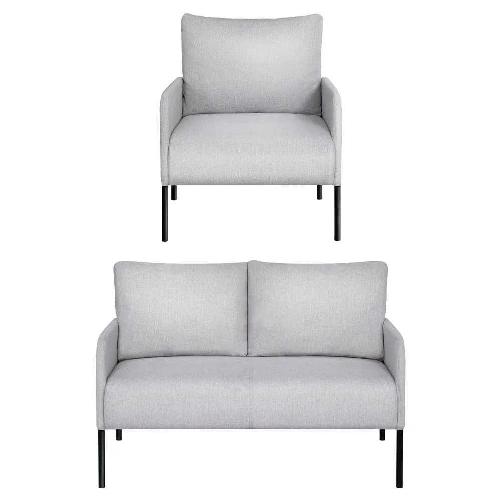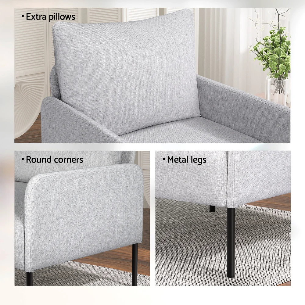 Artiss Kane 4 Seater Armchair Sofa Set, Modern Scandinavian, Linen Fabric, Metal Frame, Grey, Plush Comfort