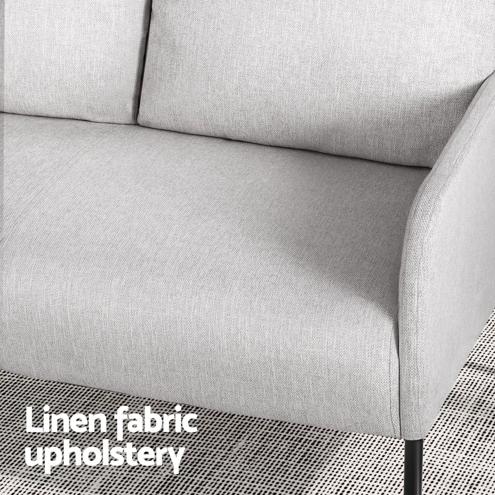 Artiss Skane 2-Seater Sofa Armchair - Scandinavian Design, Faux Linen, Rubber Wood, 113x62x68cm, Grey