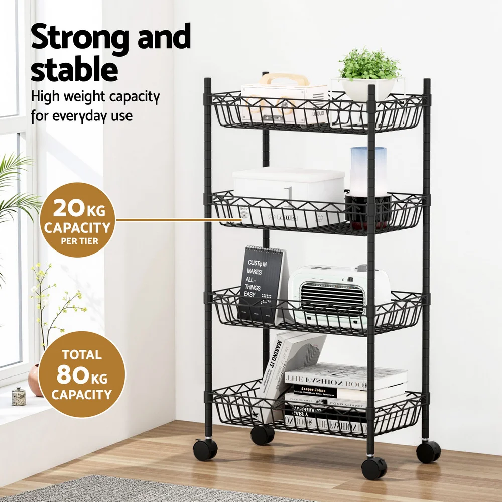 Artiss 4-Tier Adjustable Steel Shelving Unit with Wheels - 20kg Capacity, Rust-Resistant, 45x25x90cm, Black