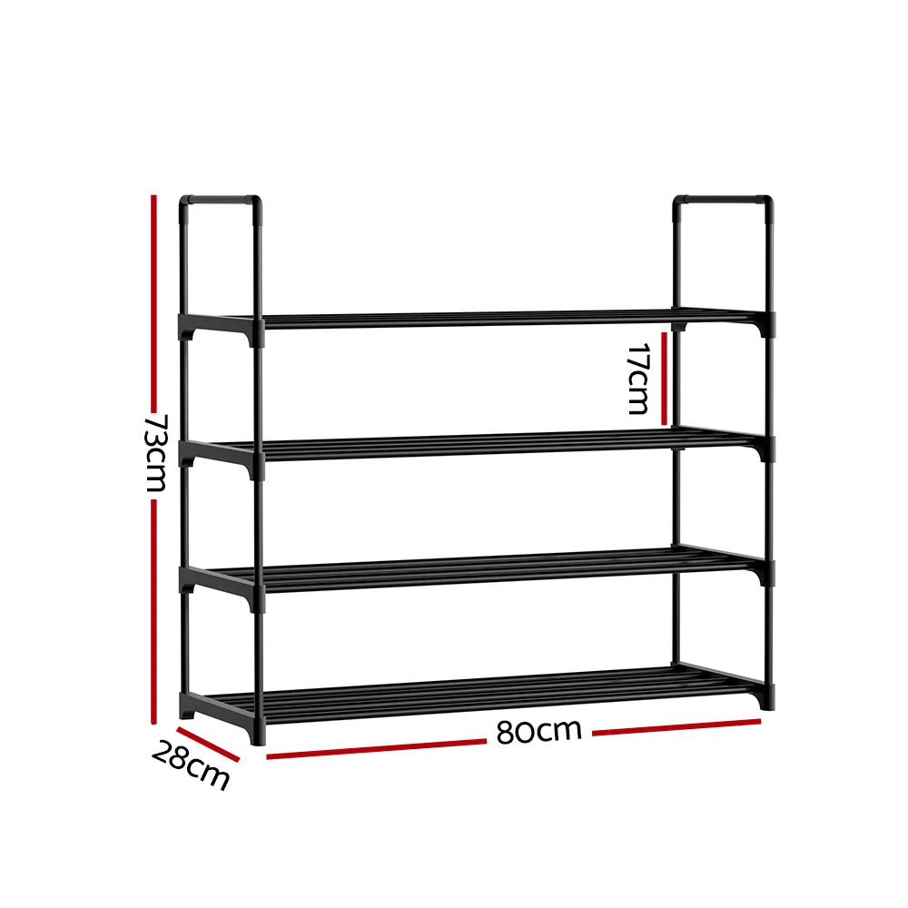 Artiss 4-Tier Shoe Rack – Stackable, Black Metal, Holds 16 Pairs, 80cm Wide, Tool-Free Assembly, Sturdy & Durable Design
