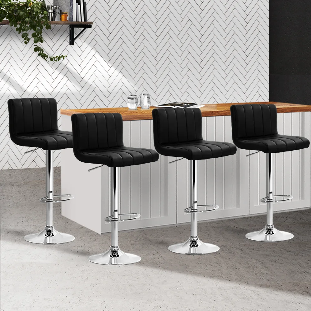 Artiss 4x Black Bar Stools - PU Leather, Gas Lift, 360° Swivel, Chrome Finish, Adjustable Height, High Backrest