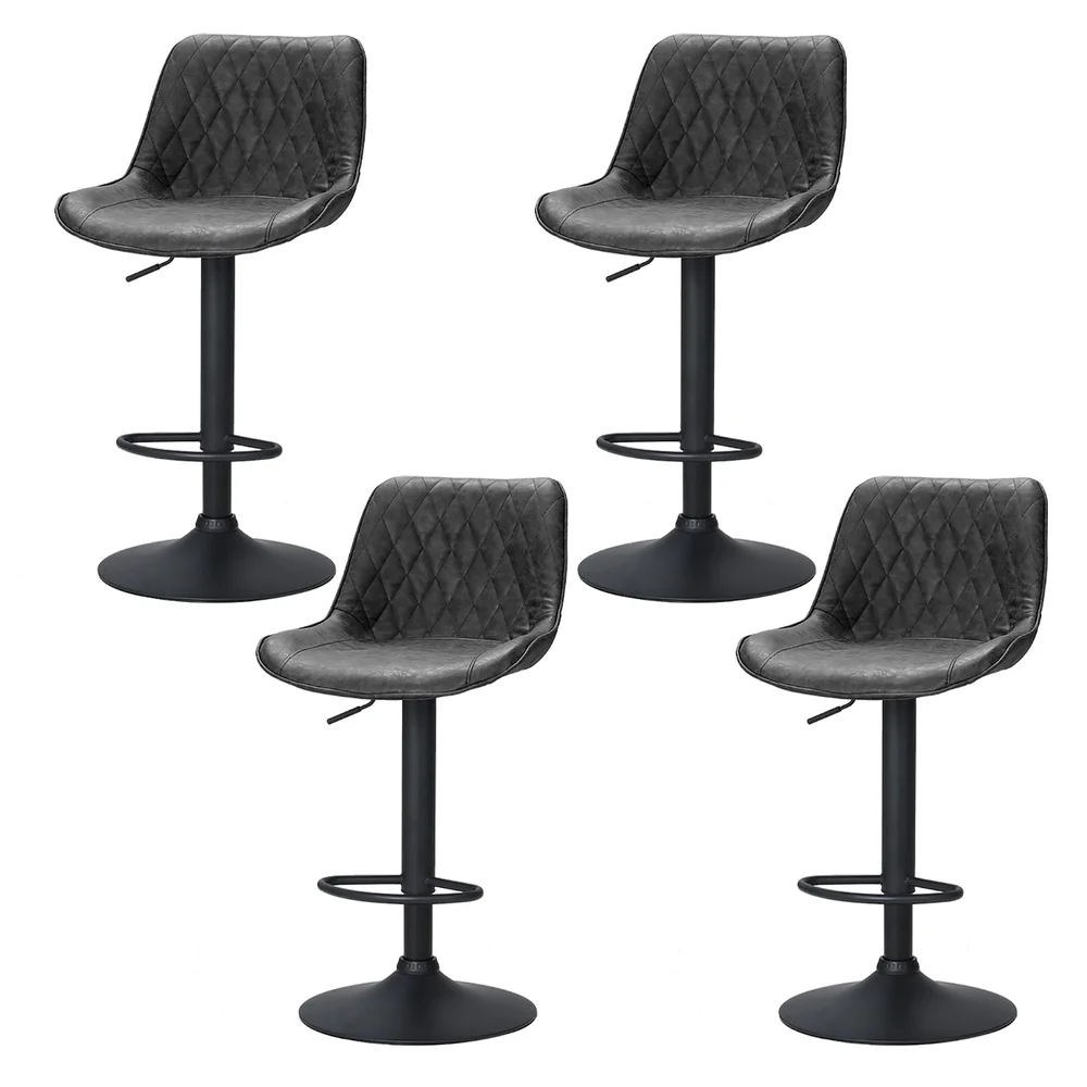 Artiss Rushal 4x Vintage Black Leather Bar Stools - Adjustable Gas Lift, 360° Swivel, Elegant Design