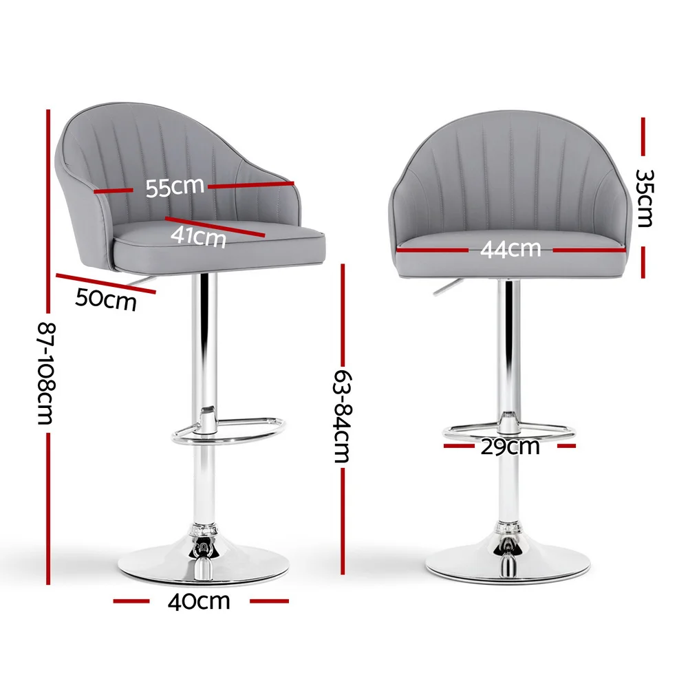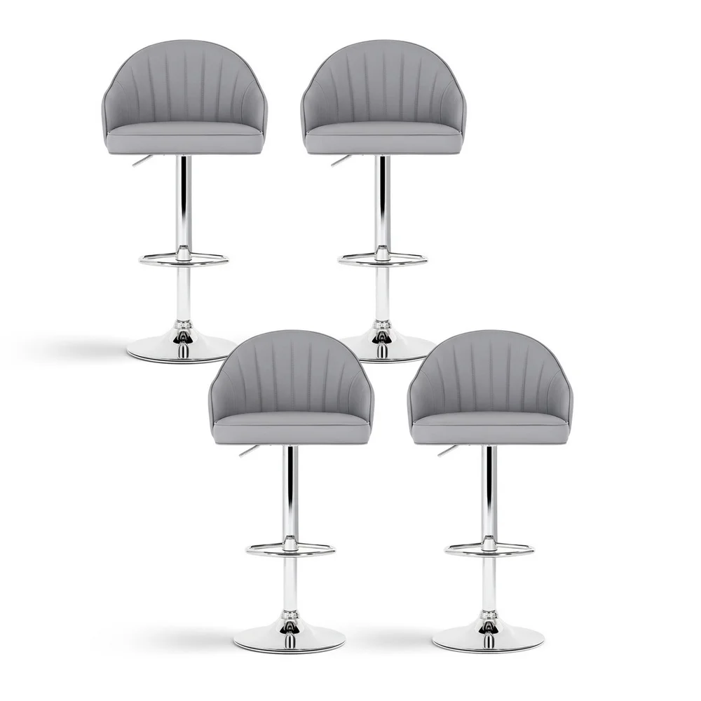 Artiss 4x Grey Shell Leather Bar Stools - Swivel, Adjustable Gas Lift, 120kg Capacity, Easy Assembly, Modern Style
