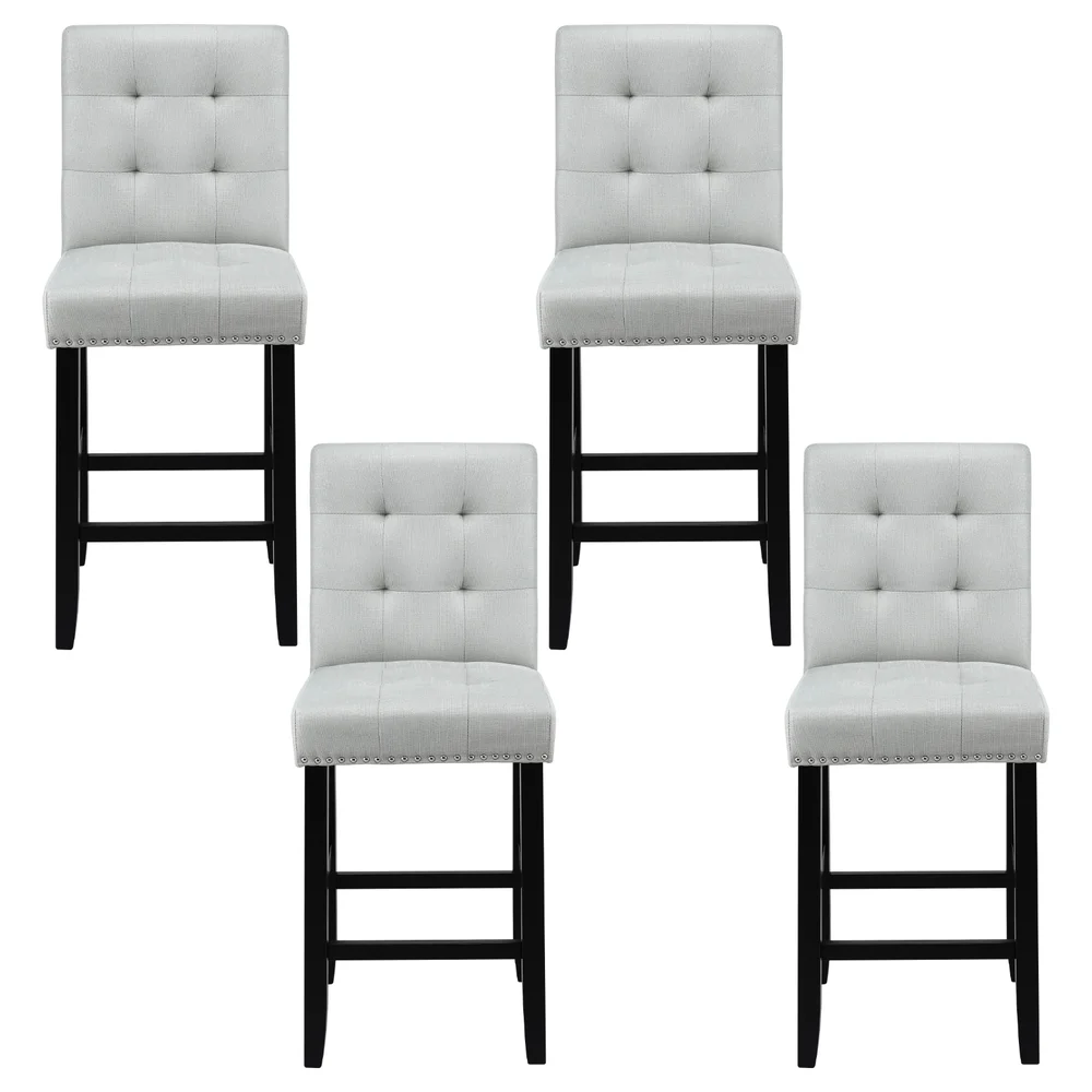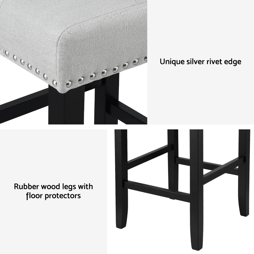 Elevate your seating arrangement with the Artiss 4x Bar Stools, designed to blend elegance and comfort seamlessly. Ideal for kitchens, bars, and dining areas, these ergonomic stools feature a luxurious faux linen upholstered seat adorned with a chic silver rivet edge. The high backrest and thick foam padding ensure ultimate comfort, while the robust rubber wood frame supports up to 120kg per stool. Protect your floors with anti-slip floor protectors and enjoy hassle-free setup with the easy assembly design. Transform your space with these sophisticated stools today!