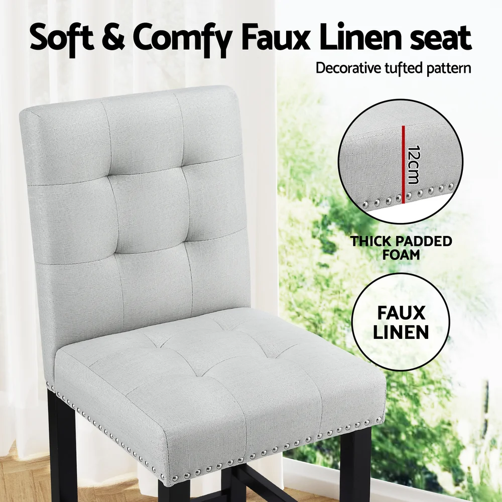 Artiss 4x Ada Grey Bar Stools - Faux Linen Upholstery, 67cm Seat, Rubber Wood Frame, High Back, Anti-Slip Protectors