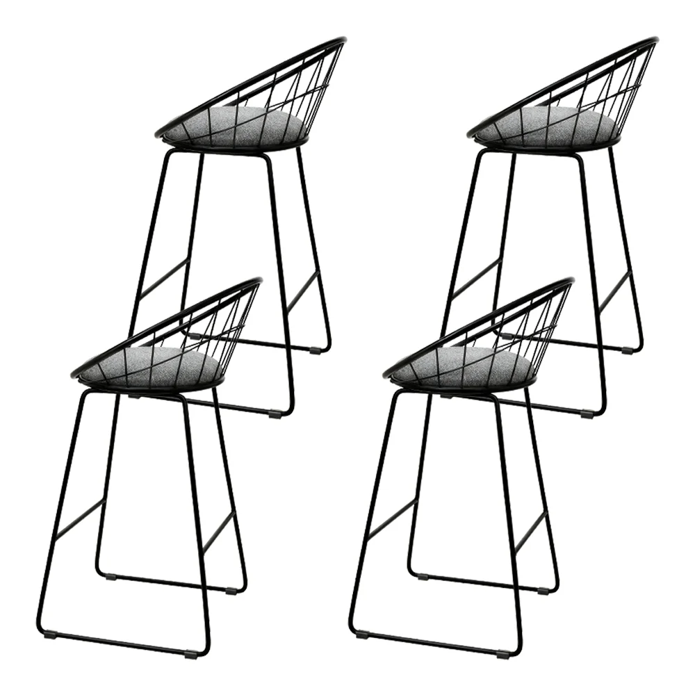 Artiss 4x Bar Stools with Faux-Linen Padded Seats, 65cm Height, Powder-Coated Steel Frame, Black, Anti-Slip Protectors