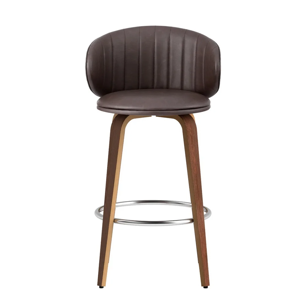 Artiss Set of 4 Bar Stools Dining Chairs, Brown PU Leather, Walnut Wood, 65cm Seat, Ergonomic & Adjustable
