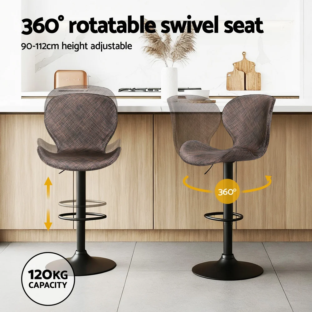 Artiss 4x Ergonomic Swivel Bar Stools, Adjustable 90-112cm, PE Rattan, Metal, Anti-Slip, 120kg Capacity, Brown