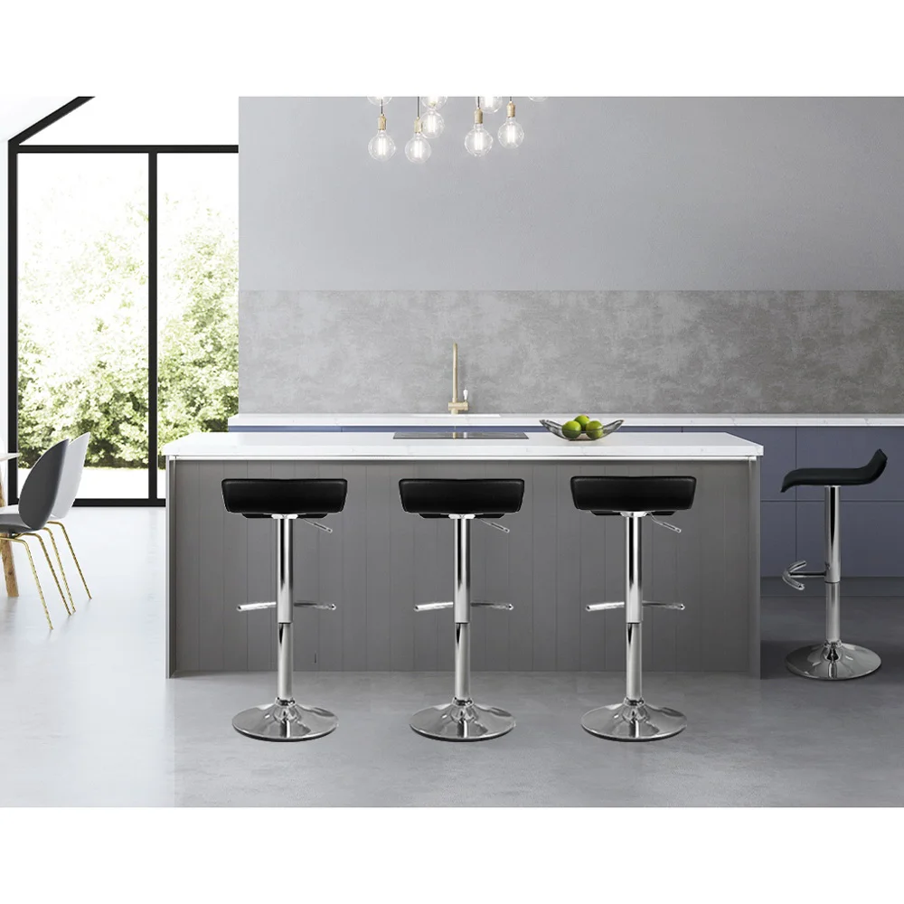 Artiss Sena 4x Bar Stools - Black PU Leather, Adjustable Gas Lift, 360° Swivel, Chrome Steel Base, Elegant Design
