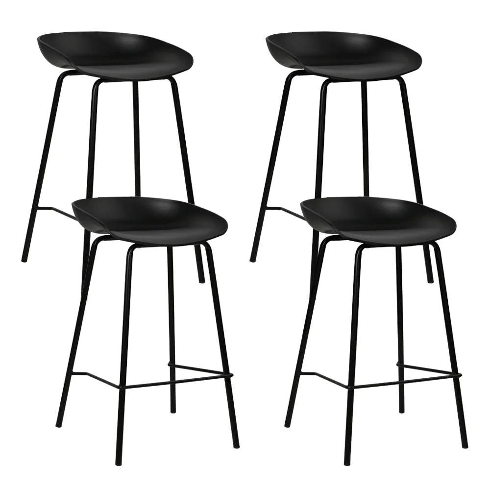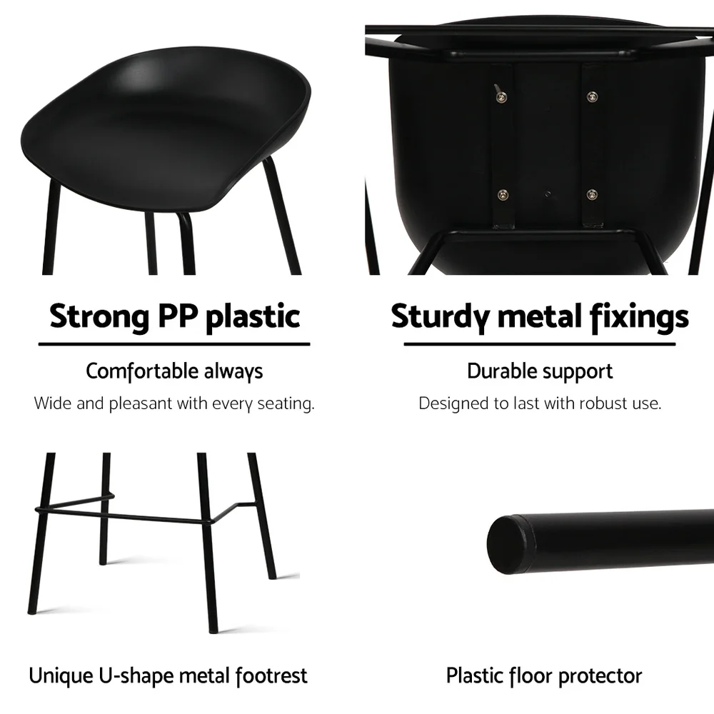Artiss 4x Black Bar Stools, 67cm Height, Sleek Metal Frame, PP Plastic Seat, Minimalist Design, Anti-Slip Feet
