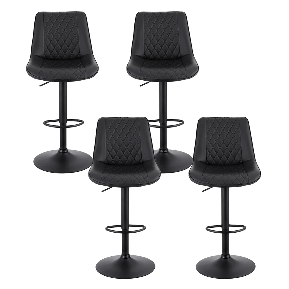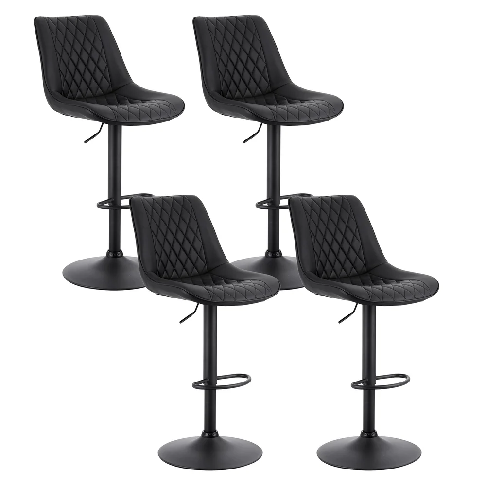 Artiss Set of 4 Black Diamond PU Leather Bar Stools – Adjustable Swivel, Gas Lift, Metal Frame, 120kg Capacity
