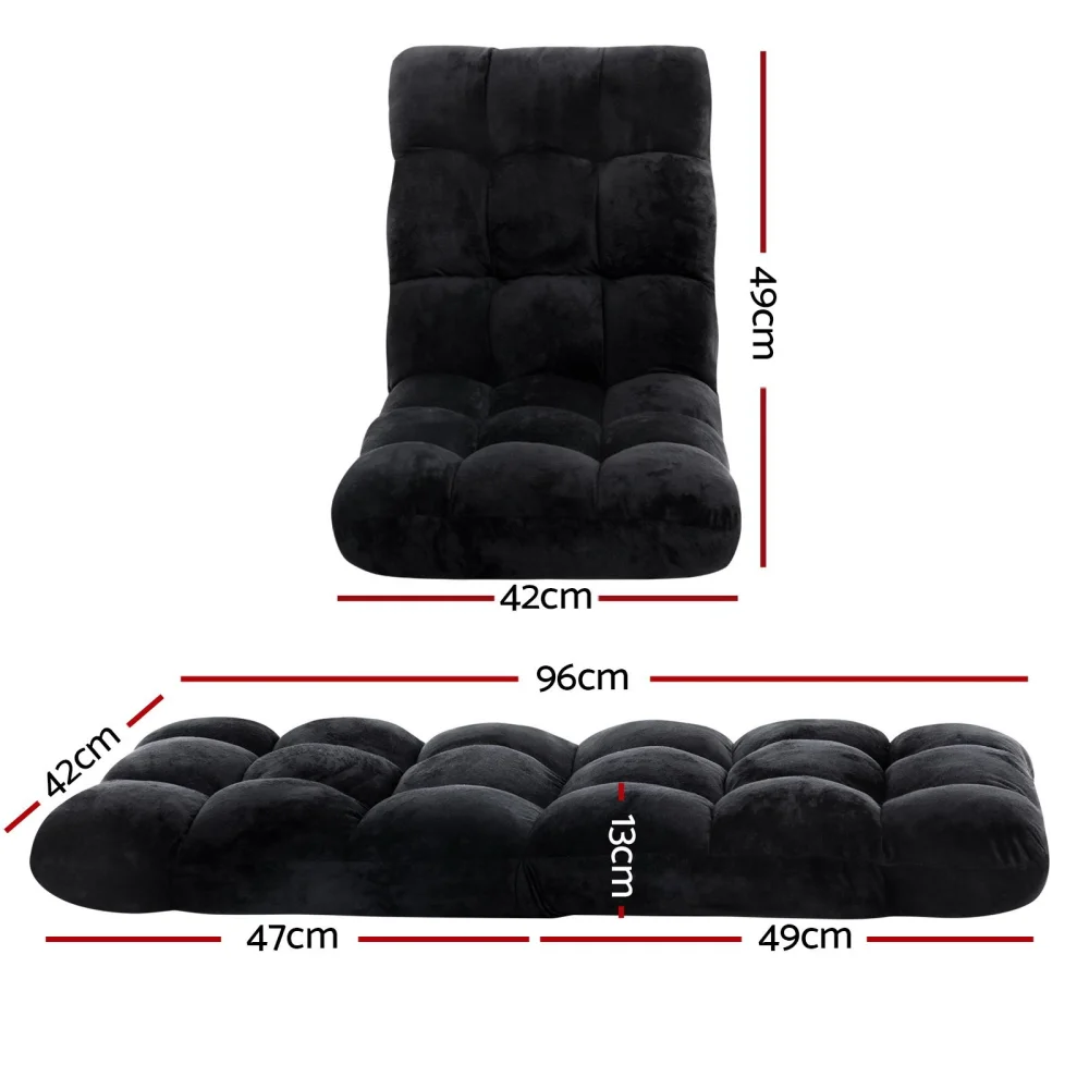 Artiss 4X Black Flannel Lounge Sofa Bed - Adjustable 14 Positions, Sturdy Steel Frame, Plush Cushion, Foldable Design