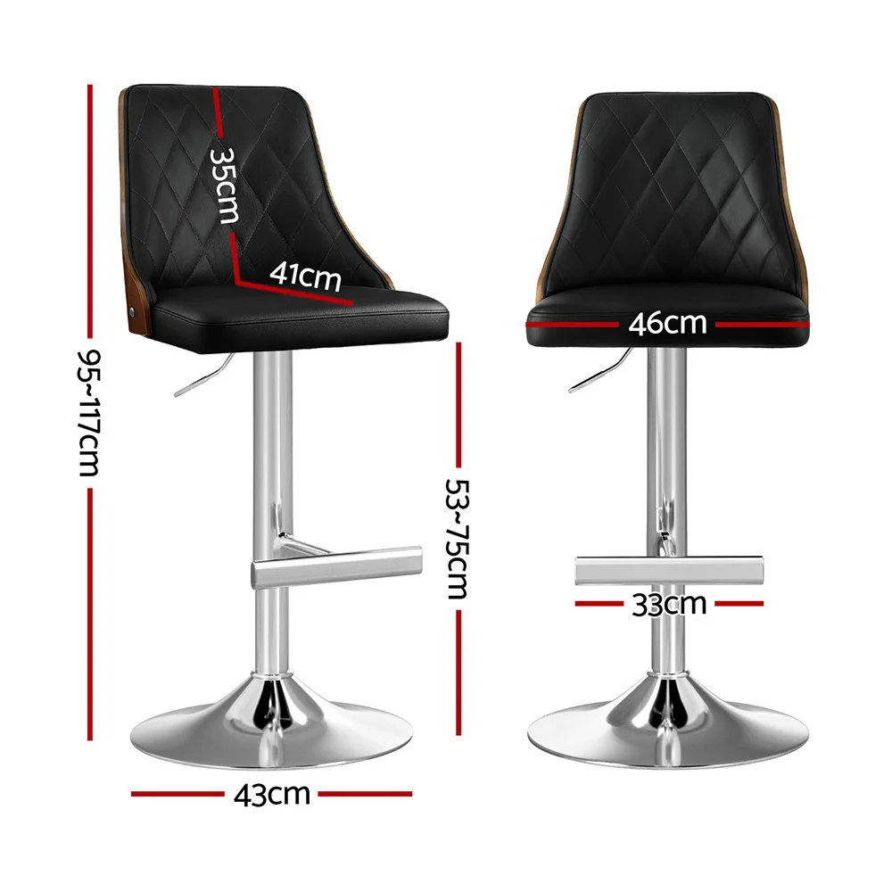 Artiss 4X Black Leather Bar Stools, Adjustable 95-117cm, Bentwood Backrest, Swivel, Anti-Slip, 150kg Capacity