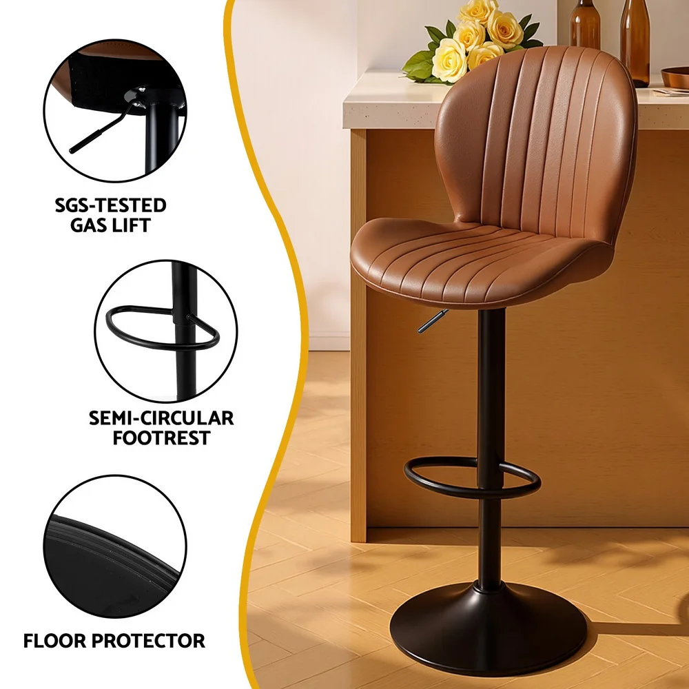 Artiss 4x Brown Shell Leather Bar Stools - Adjustable Height 95-113cm, Swivel Gas Lift, Metal Frame, Anti-Slip Base