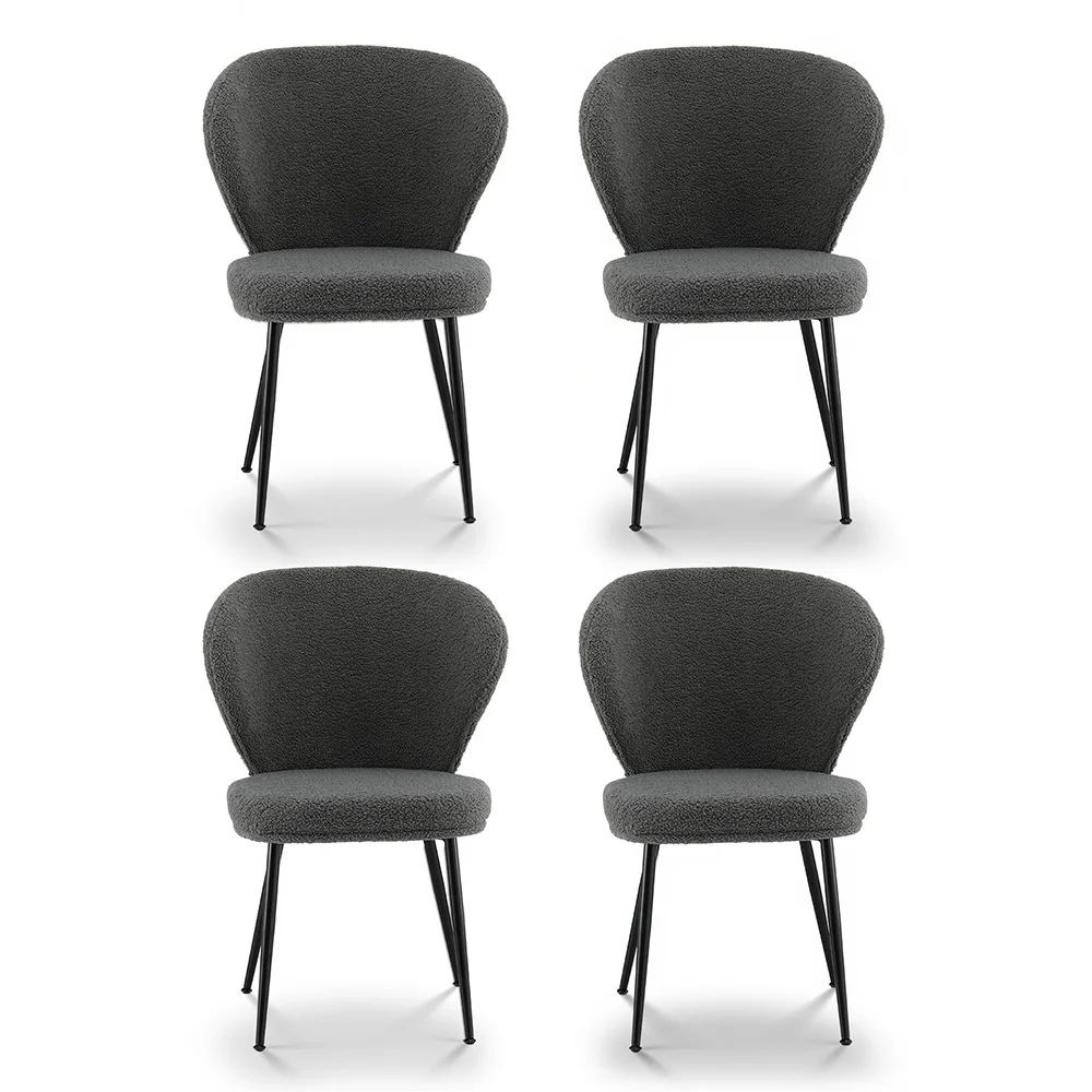 Revamp your dining area with the Artiss 4x Dining Chairs in Sherpa Bouclé Grey. These contemporary chairs feature plush Sherpa fabric upholstery and an ergonomic wing backrest that offers elegance and comfort. The high-density foam cushions ensure lasting cosiness, while the sturdy, powder-coated steel legs with anti-slip protectors provide stability on any floor. Ideal for various settings like lounges and reading nooks, each chair supports up to 150kg. The modern grey hue effortlessly complements any decor. Easy to assemble with the included manual, these chairs are also simple to maintain—just spot-clean with a damp cloth.