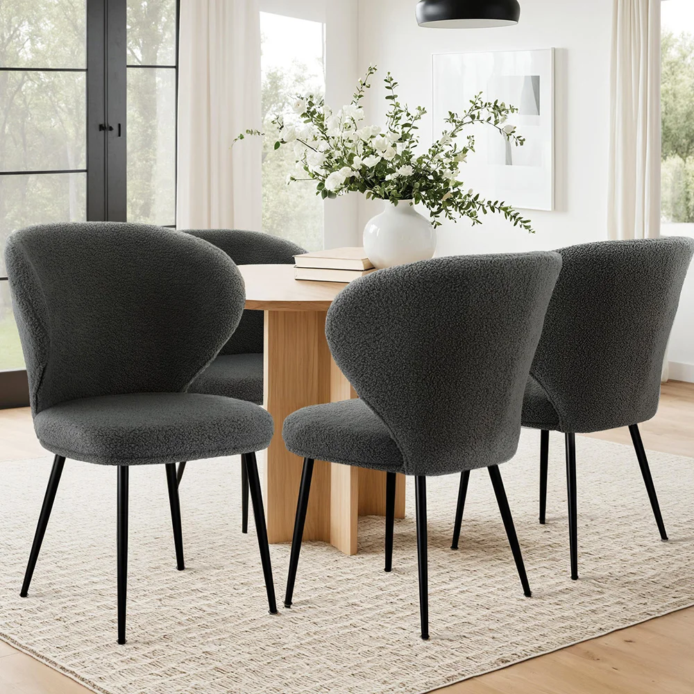 Artiss 4x Sherpa Bouclé Dining Chairs - Grey, Wing Back, Curved Ergonomic Design, 150kg Capacity, Steel Legs, 60x50x90