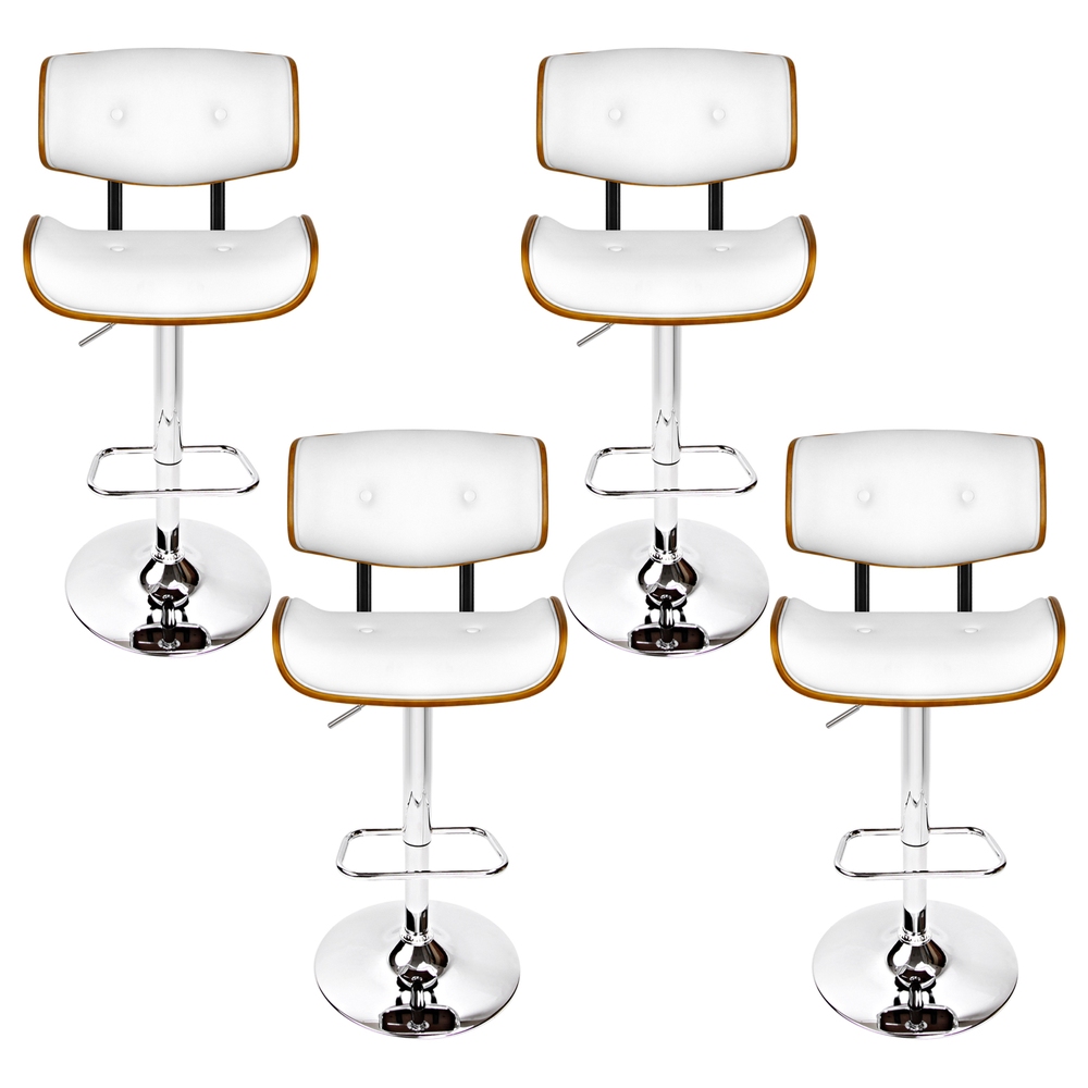 Artiss 4x Gas Lift Bar Stools, White PU Leather & Wooden Design, Chrome Finish, Adjustable Height, 130kg Capacity