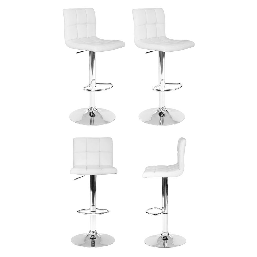 Artiss 4x Bar Stools White PU Leather, Gas Lift Adjustable, 360° Swivel, Chrome Base, Chequeered Backrest, 68-81cm
