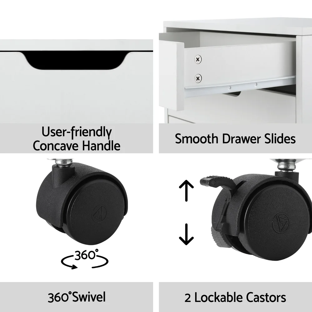 Artiss 5-Drawer Filing Cabinet, Mobile Rolling Storage Chest, Particle Board, White, 49x41x62cm, Locking Wheels