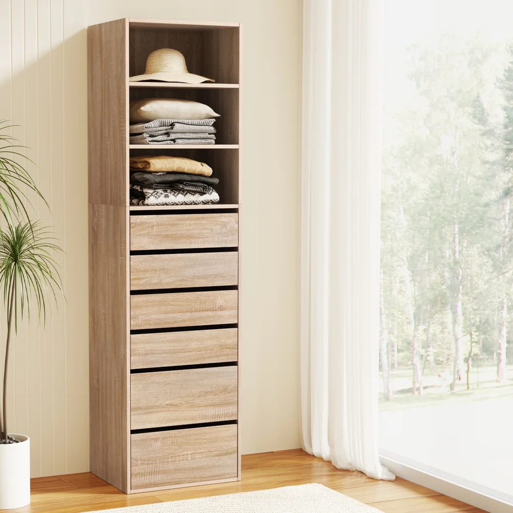 Artiss 6-Drawer Tallboy Chest, Pine Finish - Handle-Free Design with Smooth Runners, 50.5x40x185cm, Easy Assembly