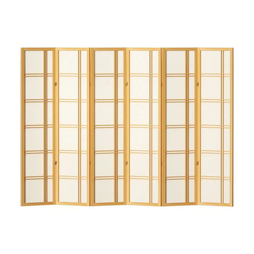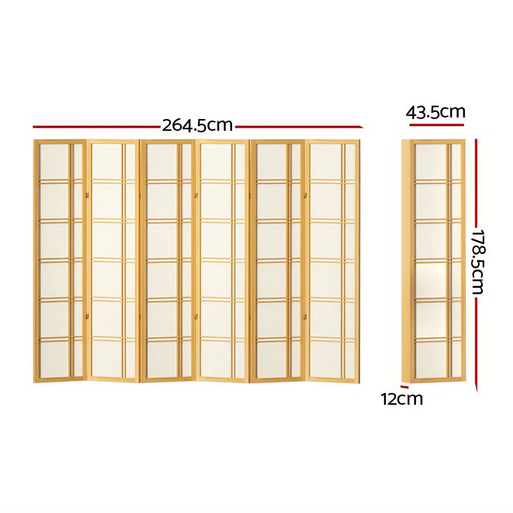 Artiss 6-Panel Room Divider Screen, Natural Pine Wood, 265x179cm, Foldable & Eco-Friendly, with 1-Year Warranty