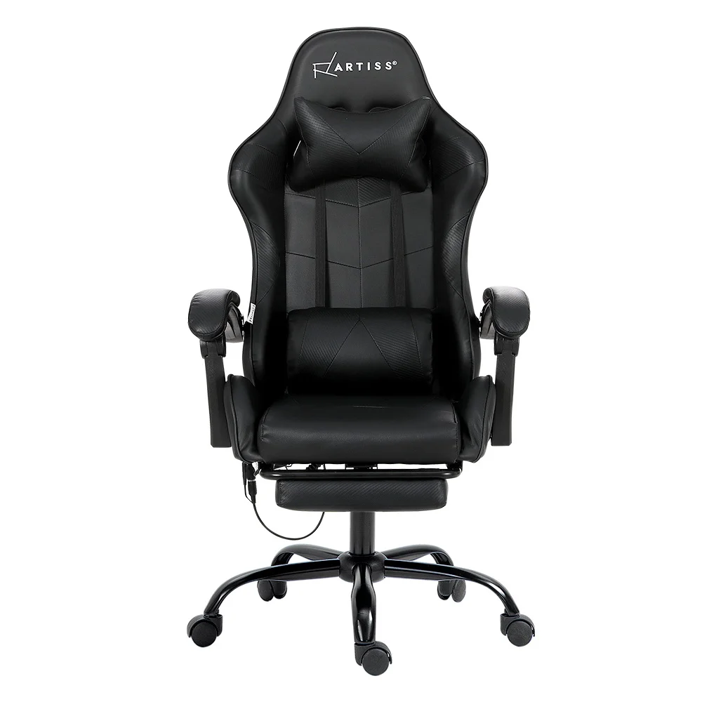 Artiss 2-Point Massage Gaming Chair with Footrest - Ergonomic Black Office Chair, Recline & 360° Swivel