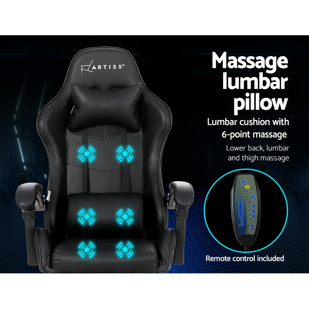 Artiss 6-Point Massage Gaming Office Chair, Black PU Leather, LED Lights, Retractable Footrest, Ergonomic Design