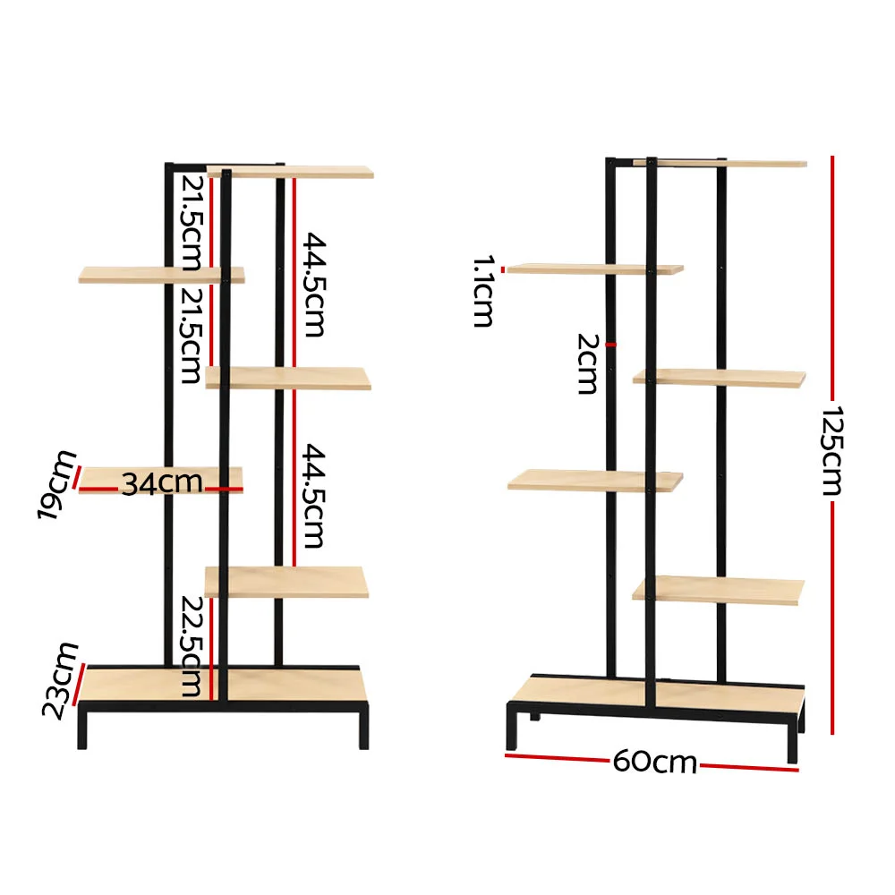 Artiss 6 Tier Metal Plant Stand Zigzag Flower Pot Shelf, E1 Particle Board, 125cm Tall, Indoor Outdoor Display, Natural