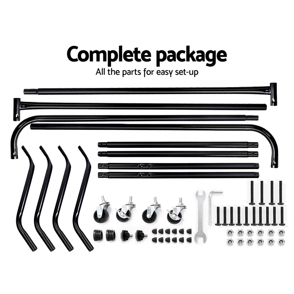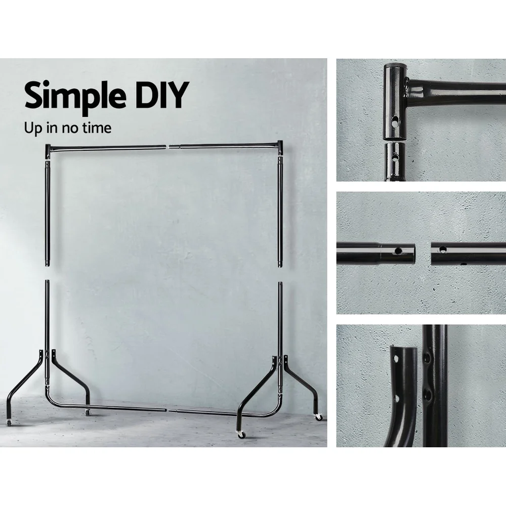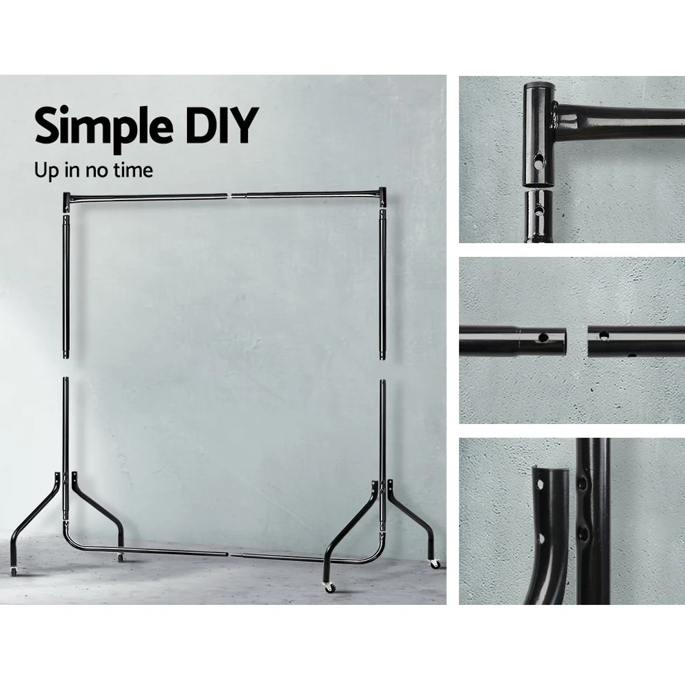 Artiss 6FT Black Metal Clothes Rack Airer Coat Stand with Wheels - Sturdy, Anti-Slip, Rust-Resistant, 60kg Capacity