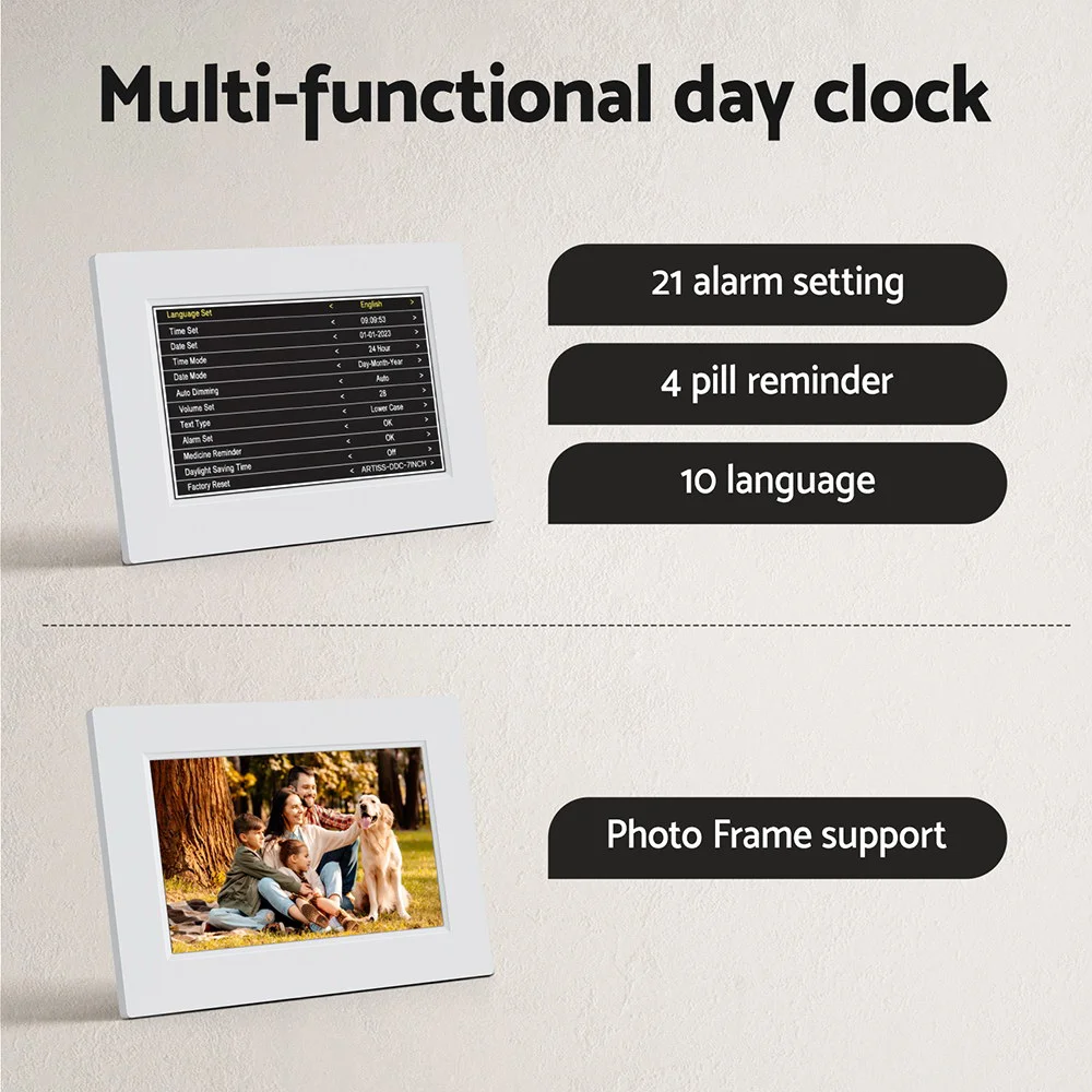 Artiss 7" Digital Day Clock - Multi-Functional Alarm, Calendar, Photo Frame, & Entertainment Hub - Black