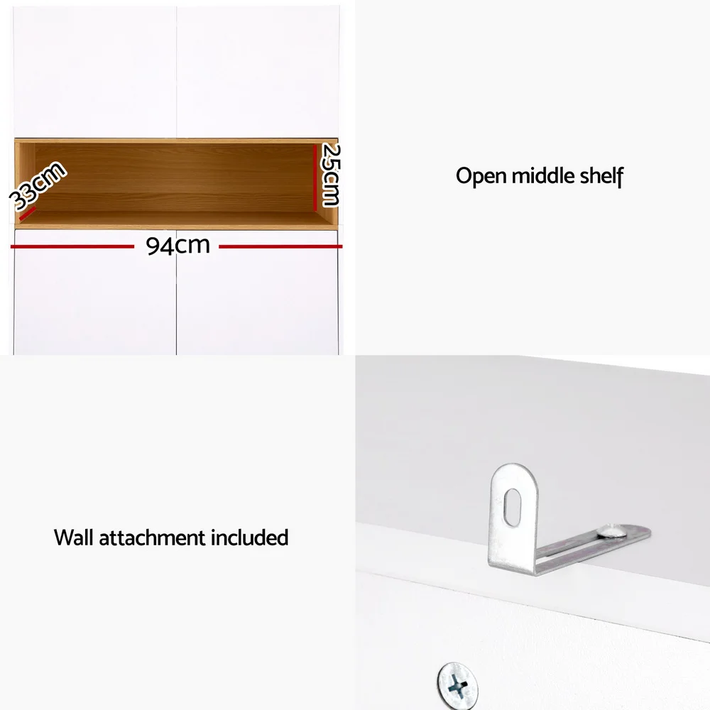 Artiss Shoe Rack Cabinet - White, 4 Doors, Holds 60 Pairs, Melamine Particle Board, Adjustable Shelves, 160cm Tall
