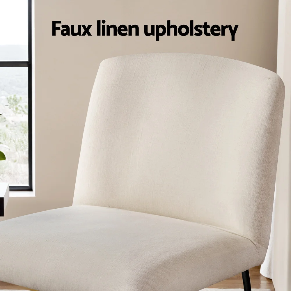 Elevate your space with the Artiss Accent Chair Armchair Cross Leg in Beige, a blend of modern style and everyday functionality. This armless chair features soft faux linen upholstery, high-resilience foam for superior comfort, and a sturdy metal sled base with protective plastic pads. Its minimalist design fits seamlessly in living rooms, bedrooms, or offices. Easy to assemble and built to hold up to 150kg, it's a practical and chic addition to any decor, backed by a 5-year warranty.