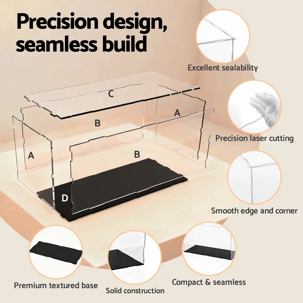 Display your prized collectibles with the Artiss Clear Acrylic Display Case, a stylish and modern solution for showcasing your car toys, figures, and decor items. Measuring 35 × 15 × 15 cm, this display case is crafted with high-clarity acrylic panels and a premium black base, offering a sleek and elegant presentation. Its fully dust-proof enclosure ensures that your items remain pristine, while the 3 mm heavy-duty acrylic construction guarantees lasting durability. With quick and easy installation, this versatile display box is perfect for home, office, or retail settings, and makes a thoughtful gift for collectors. Backed by a 1-year warranty, it's the perfect blend of style and functionality.
