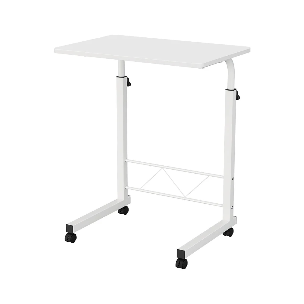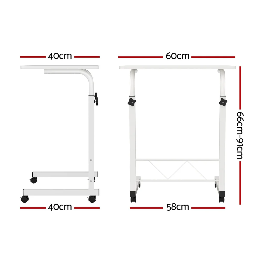 Artiss White Adjustable Laptop Desk Table - 60CM, Portable, U-Shape, 360° Rotating, MDF Top, Lockable Wheels