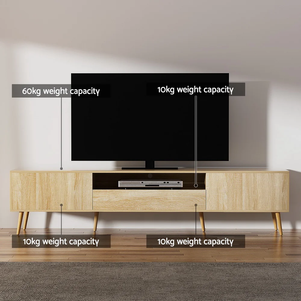 Artiss 180cm Oak White TV Cabinet Entertainment Unit, Scandinavian Design, 2 Drawers, Easy Assembly