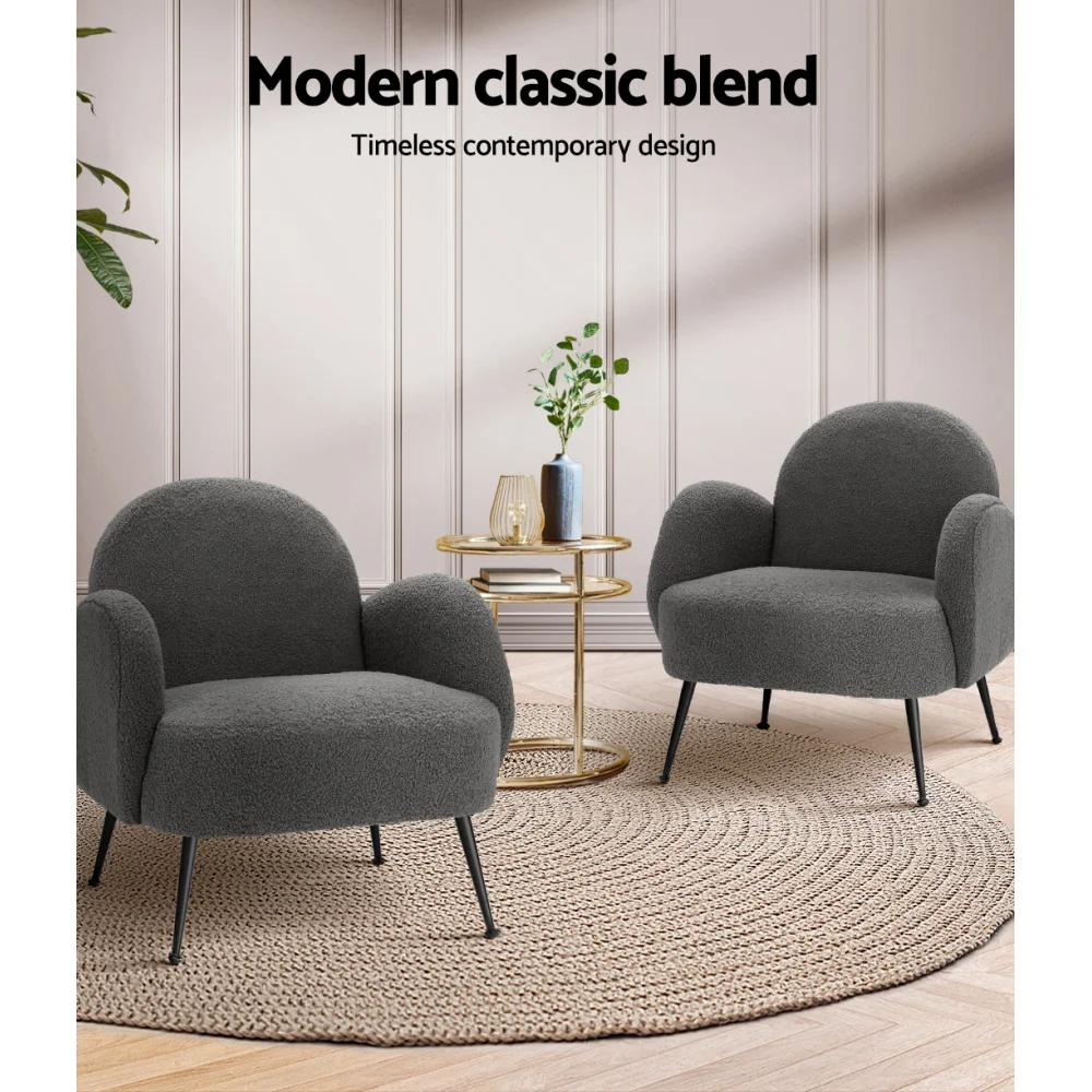 Artiss Hanes Armchair, Sherpa Fabric, Charcoal, 64x70x74cm, Luxurious Comfort, Stylish Design, Easy Assembly