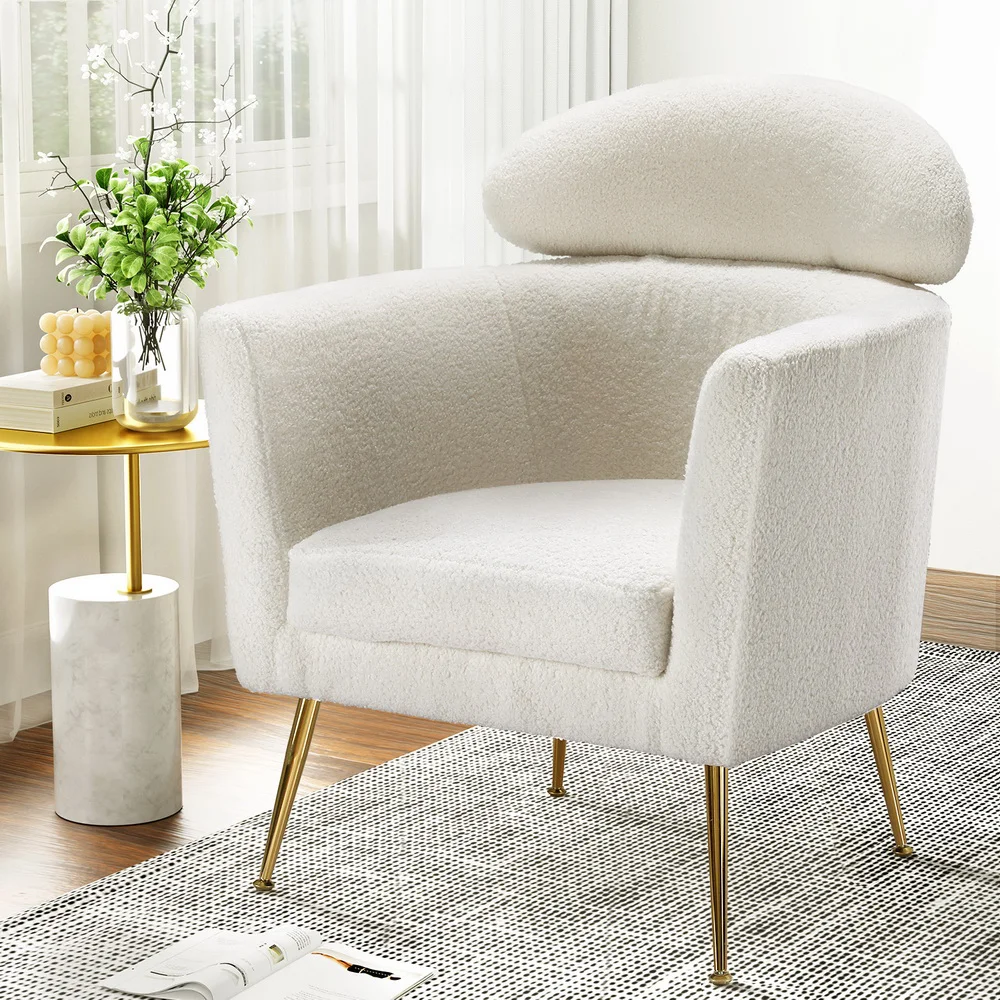 Experience timeless elegance with the Artiss Armchair Boucle Fabric White Yoli. This modern armchair is crafted with precision, offering plush comfort in a sleek design. The boucle fabric upholstery provides a warm, inviting touch, while the sturdy metal frame ensures lasting durability. Perfect for contemporary interiors, this armchair is the subtle statement piece your home deserves. With a headrest, barrel backrest, and adjustable foot pads, enjoy unparalleled comfort and style.