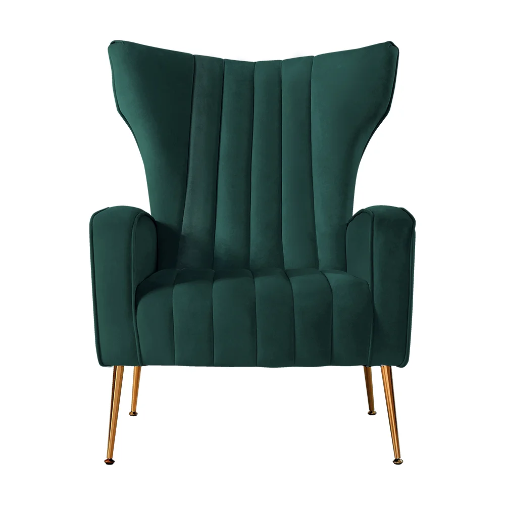 Artiss Armchair, Velvet Upholstery, Green, 73x77x91.5cm, Luxury Design, Comfortable High-Back, Golden Metal Legs