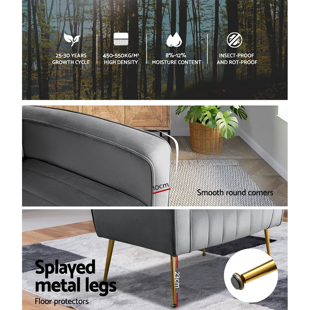 Artiss Armchair, Grey Velvet, 73x77x91.5cm - Kate Collection, High-Back Comfort, Luxury Accent Chair for Home