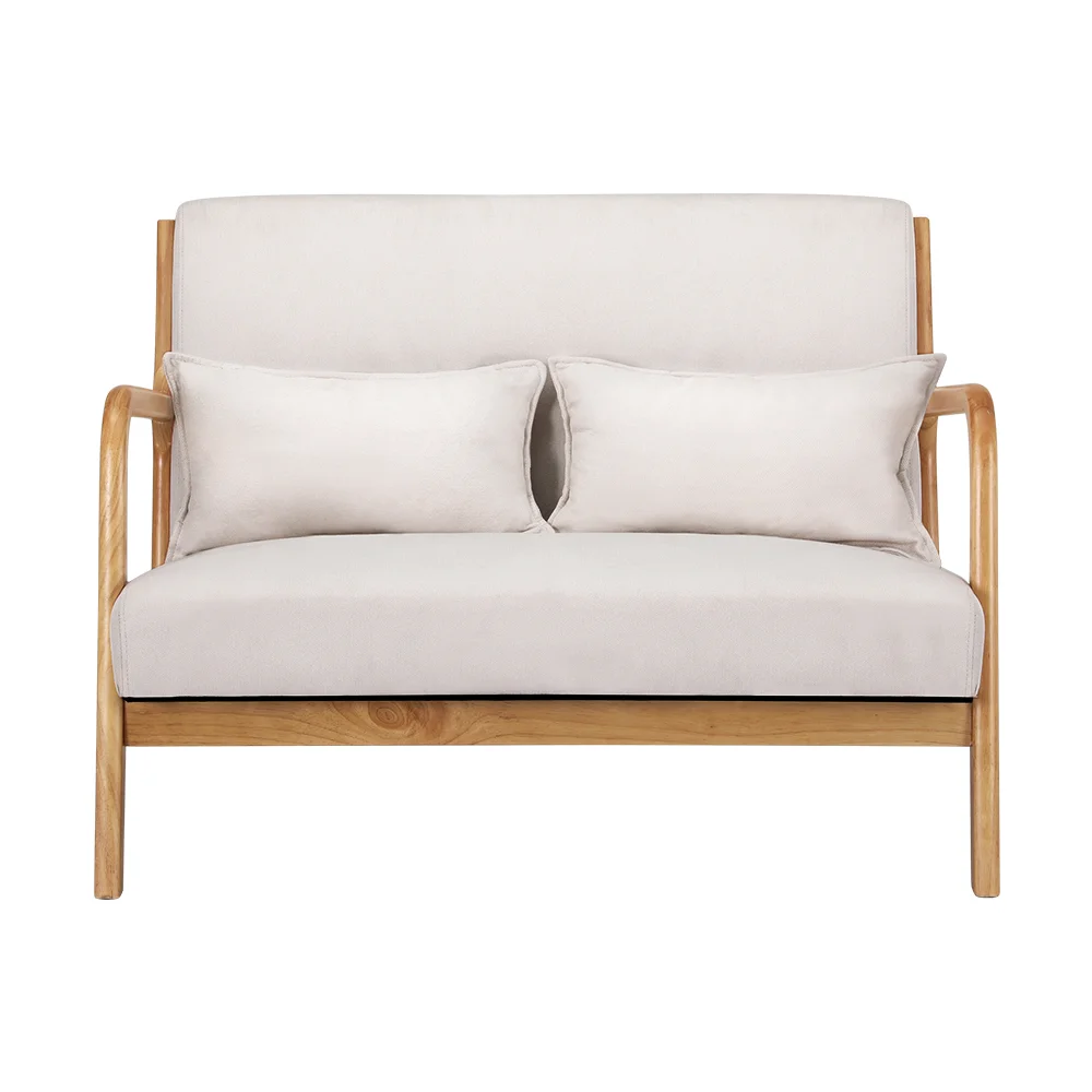 Artiss Skane 2-Seater Sofa Armchair - Scandinavian Design, Faux Linen, Rubber Wood, 113x62x68cm, Grey