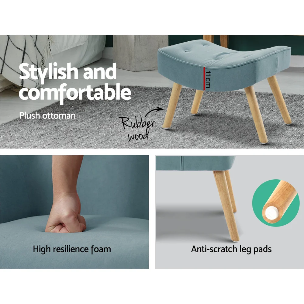 Artiss Armchair Set with Ottoman, Faux Linen, Blue, 58x52x85cm, Scandinavian Style, Comfortable & Durable