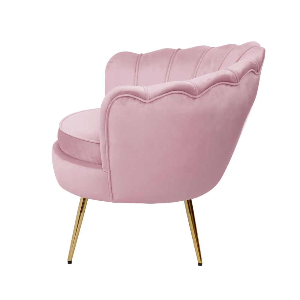 Embrace bold elegance with the Artiss Armchair Velvet Pink Callista. This trendsetting piece features plush high-resilience foam padding wrapped in luxurious velvet upholstery. The vintage-style scallop shell back offers perfect support, while gold splayed metal legs add glamour and stability. Meticulously crafted with smooth corners and a sturdy wooden frame, it seamlessly complements any decor, from classic to contemporary, and softens angular spaces. Perfect for reading or relaxing, it's a stylish addition to any room.