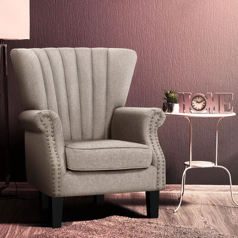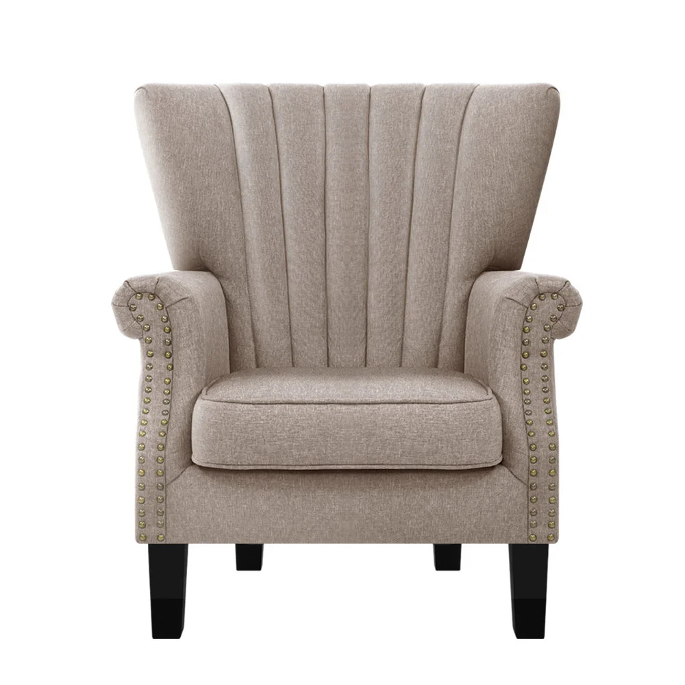 Artiss Armchair, Linen Fabric, Full-Size, Beige, 76x75x93cm, Wingback Design, Elegant Button Studs, Durable Comfort