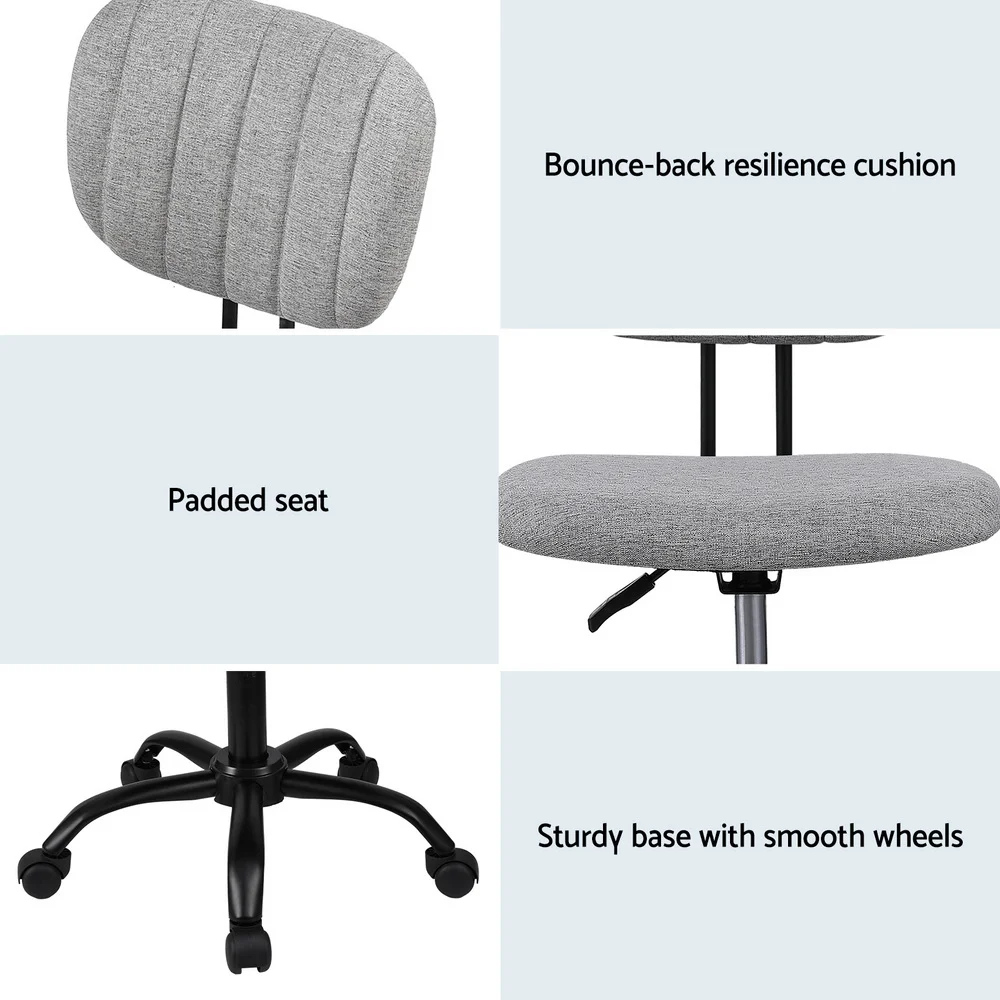 Artiss Ergonomic Armless Office Chair Grey - 360° Swivel, Height Adjustable, Fabric Seat, Compact Design, Easy Assembly
